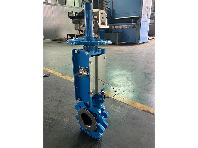 KEBV produced Slurry Knife Gate Valve DN80, Lug type drilling AS2129 Table E, Bidirectional seal, Body ductile iron, Knife SS316, Seat: NR, hand wheel operation with retaining plate for seat protection and locking device design.