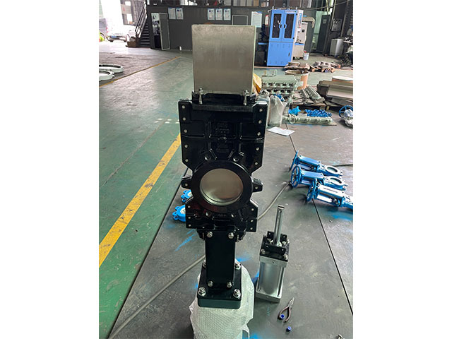 KEBV Through Conduit Knife Gate Valves are designed for two split bodies with double seats and for media with high consistency. Lug type PN10 DN150, Body ductile iron, Knife SS304 Seat: EPDM, with double-acting pneumatic actuator. It assures a non-clogging shut off on either normal or reverse flow.