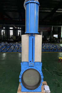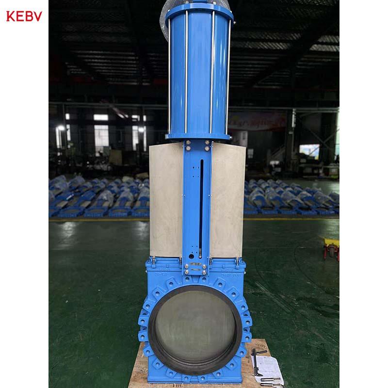 KEBV produced pneumatic slurry knife gate valve DN600, drilling ANSI 150lb, ductile iron body,